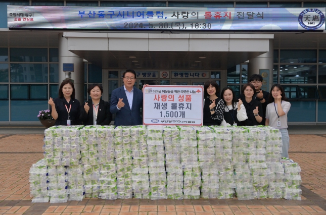 [뉴스서울] 부산동구시니어클럽은 지난 30일, 동구에 사랑의 롤화장지 1,500개를 기탁했다.