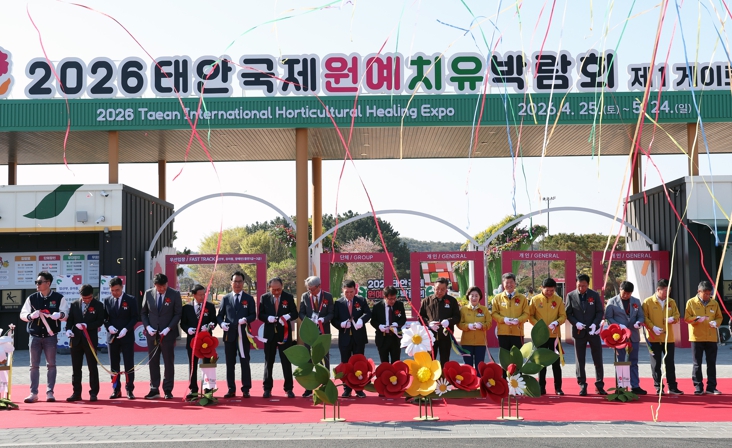태안국제원예치유박람회 조직위원회는 25일 안면도 꽃지해안공원에서 ‘2026 태안국제원예치유박람회’ 개막식을 열고, 박람회 성공 출발을 안팎에 알렸다.