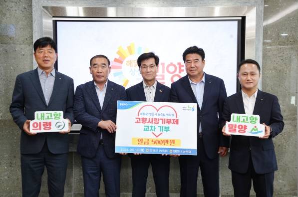 [뉴스서울] 밀양시는 이용택 의령농협 조합장, 김성수 농협 의령군지부장, 하미선 농정단장이 18일 시청 시장실을 방문해 임직원 50명이 참여한 고향사랑기부금을 500만원을 전달했다고 밝혔다.
