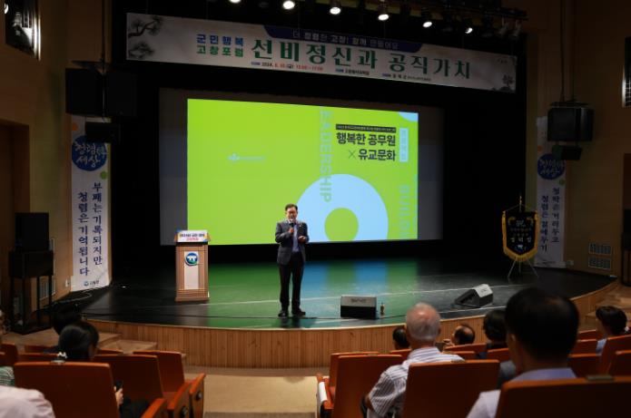 [뉴스서울] 고창군이 30일 고창동리국악당에서 정재근 한국유교문화진흥원장을 초청해 ‘선비정신과 공직가치’를 주제로 군민 고창포럼을 열었다.