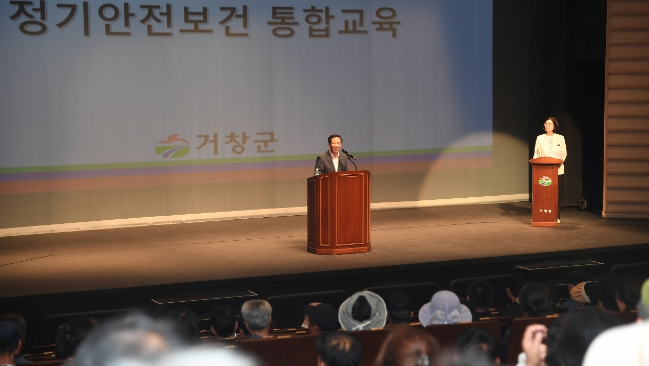 [뉴스서울] 거창군은 지난 25일 거창문화센터에서 폭염 속 안전한 근로환경 조성을 위해 환경미화, 청사·도로·공원 유지 관리 등 공공행정 현업근로자 470명을 대상으로 2분기 정기 안전보건교육을 실시했다.