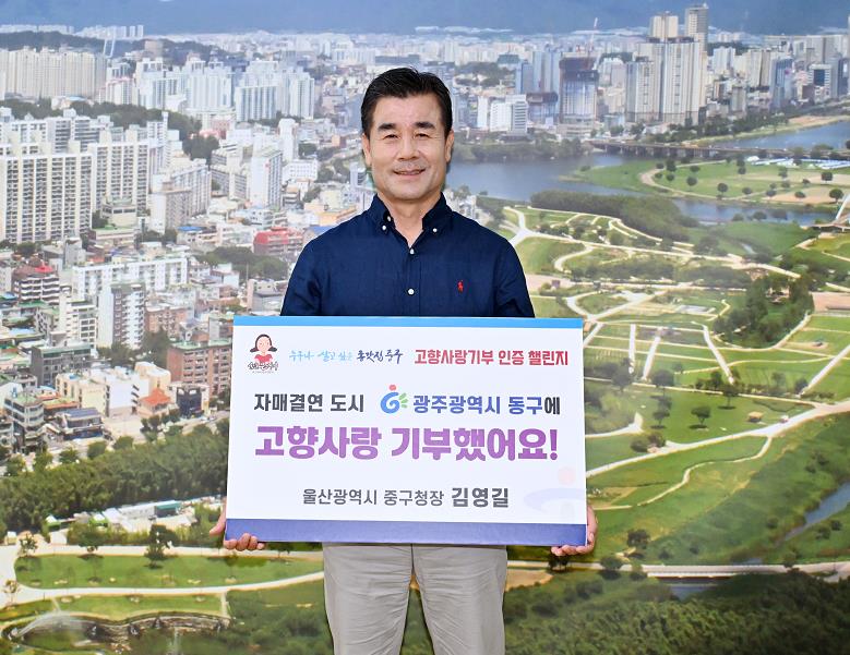 [뉴스서울] 김영길 울산 중구청장이 고향사랑기부제의 성공적 안착 및 기부문화 확산을 위해서 8월 6일 ‘고향사랑기부 인증 도전 잇기(챌린지)’에 동참했다.