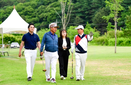 방문단은 간담회 이후 최문순 군수, 송호관 군체육회장, 신준현 군파크골프협회장 등과 팀을 이뤄 산천어 파크골프장 제2구장에서 파크골프를 체험하며 잔디 상태와 코스 구석구석을 살폈다.