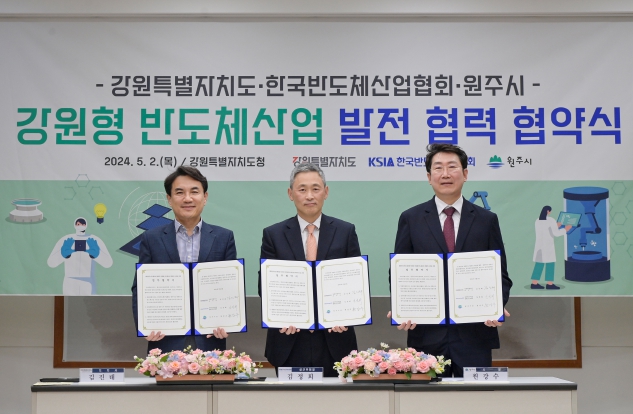 이번 협약식에는 김진태 강원특별자치도지사, 원강수 원주시장, 김정회 한국반도체산업협회 부회장이 협약 당사자로 참석했다.