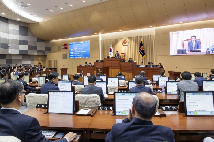 배한철 의장은 개회사를 통해 “도민의 실생활에 도움이 되는 조례 제·개정과 포항·구미 특화단지 유치, 안동·경주·울진 신규 국가 산단 선정 등 경북의 미래 먹거리 확보를 위해 의정역량을 집중해왔다”며, 제12대 도의회의 의정활동에 대한 소회를 밝히는 한편,“12대 전반기 도의회가 유종의 미를 거둘 수 있도록 경상북도와 경상북도교육청의 2023회계연도 결산심사에 만전을 기해 줄 것을 당부하고, 대구경북신공항 복수 화물터미널 설치를 강력하게 촉구해 나갈 것”을 강조한다.