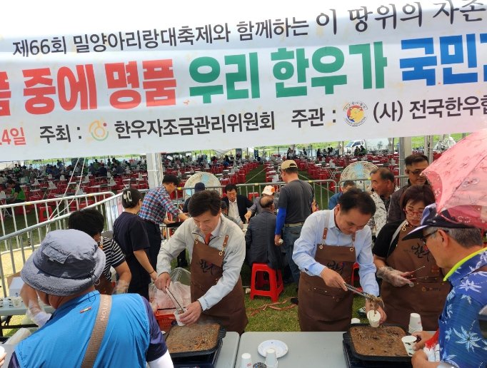 이 페스티벌은 한우 브랜드 홍보와 지역 친환경 농축산물 소비 촉진을 위해 마련됐으며, 밀양강이 보이는 야외에 숯불을 사용하는 800여 석의 대형 식당을 운영해 방문객들의 발길을 끌고 있다.