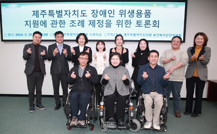 [뉴스서울] 제주특별자치도의회 보건복지안전위원회(위원장 김경미)는 지난 29일 제주특별자치도의회 소회의실에서 '제주특별자치도 장애인 위생용품 지원에 관한 조례 제정을 위한 토론회'를 개최했다.