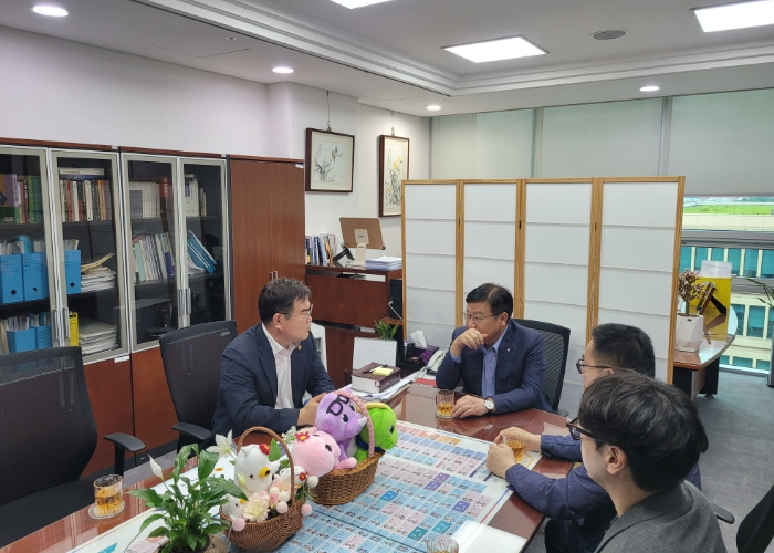 [뉴스서울] 경상남도의회 경제환경위원회 허동원 위원장(국민의힘, 고성2)은 22일 정점식 국민의힘 정책위의장을 만나 방산부품연구원의 경남 유치를 촉구하는 대정부 건의안을 전달하고 국회 차원의 관심과 지원을 요청했다.