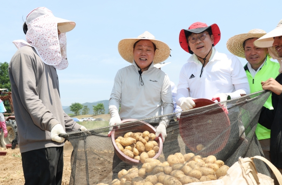 ▲ 박완수 경남도지사, 감자수확 농촌일손돕기 참여 |