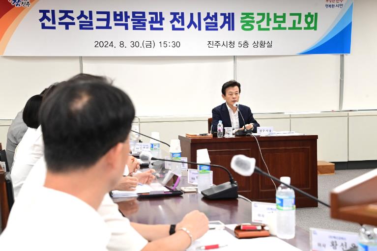 [뉴스서울] 진주시는 30일 시청 5층 상황실에서 조규일 진주시장과 진주실크박물관건립추진위원 등 관계자가 참석한 가운데 ‘진주실크박물관 전시설계 중간보고회’를 가졌다.