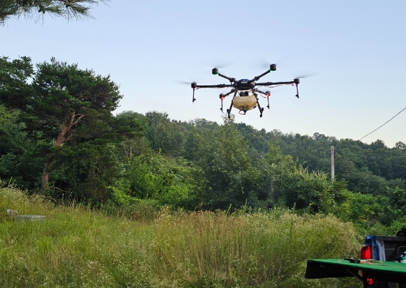 이번 방제는 총 30ha 규모로, 드론을 이용한 항공방제를 통해 농경지와 인접한 산림 내 서식하는 돌발해충을 농경지와 동시에 방제하여 효과를 극대화할 계획이다.