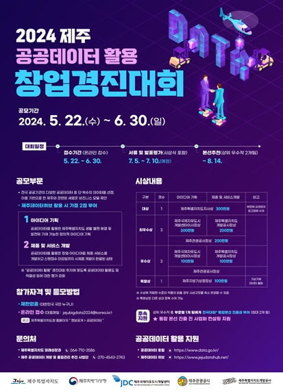 [뉴스서울] 2024년 제주특별자치도 공공데이터 활용 창업경진대회가 오는 6월 30일까지 진행된다.