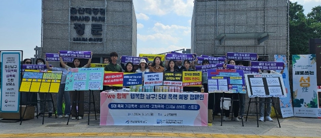 [뉴스서울] 울산 남구와 울산 남구 가정폭력·성폭력 통합상담소는 5월 가정의 달을 맞아 5대 폭력(가정폭력·성폭력, 교제폭력, 디지털성범죄, 스토킹범죄)에 대한 경각심을 일깨우기 위해 31일 울산 대공원 일대에서 여성폭력예방 캠페인을 펼쳤다.