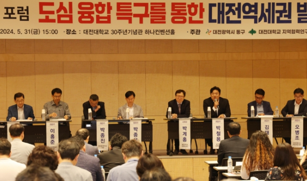 [뉴스서울] 대전 동구는 31일 대전대학교 30주년기념관 하나컨벤션홀에서 `도심융합특구를 통한 대전역세권 발전 방향'이라는 주제로 제78차 동구 포럼을 개최했다.