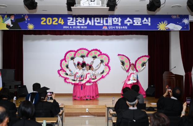 이날 수료식에는 김충섭 김천시장, 이명기 김천시의회의장, 시민대학 수료생 등 80여 명이 참석했으며 식전 공연으로 평생교육 정기강좌 한국무용반의 부채춤 공연으로 흥을 돋우었다.