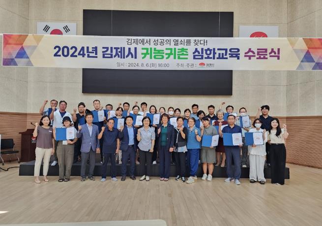 [뉴스서울] 김제시는 6일 농업인교육문화지원센터 2층 대강당에서 2024년 귀농·귀촌 심화교육 교육생 28명을 대상으로 수료식을 개최했다고 밝혔다.