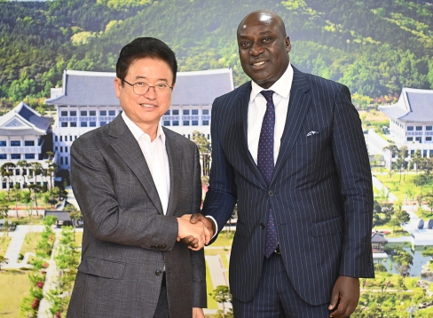[뉴스서울] 우간다 의회 외교위원회 부위원장 프레드 오폴롯 일행이 3일 경상북도-우간다 간 우호 교류 확대 논의를 위해 이철우 경북도지사를 예방했다.