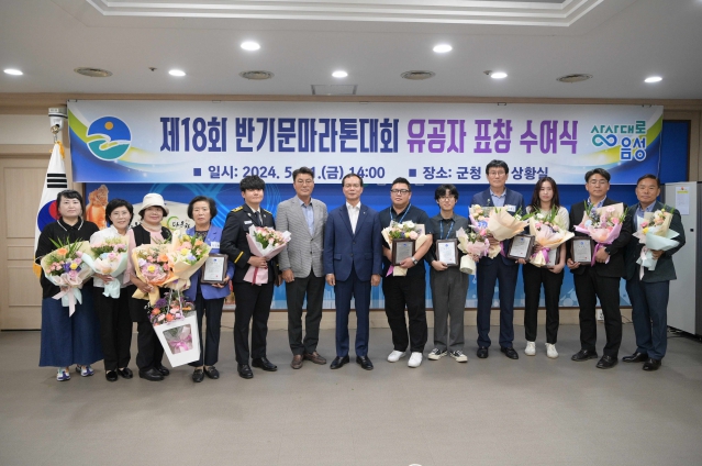 [뉴스서울] 음성군은 31일 군청 상황실에서 ‘제18회 반기문마라톤대회’의 성공 개최를 위해 적극 협조해 준 유공자에 대한 표창 수여식을 개최했다.