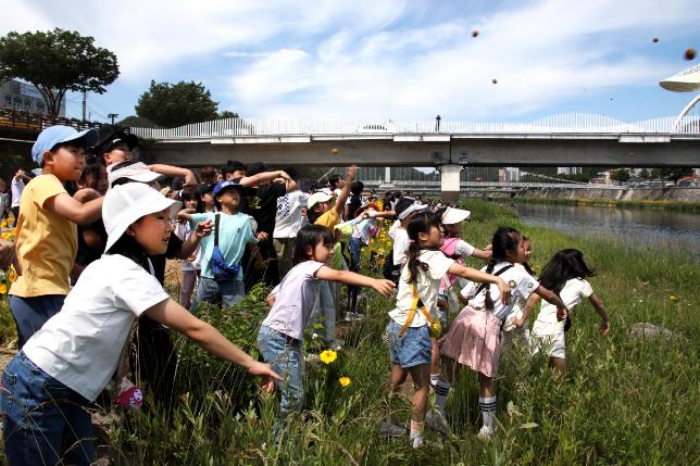 한편, 이날 사용된 EM흙공(1만 개)은 무주초등학교 학생들이 직접 만들어 2주간 숙성시킨 것으로, EM용액과 황토를 배합해 수질 정화와 악취 제거, 유기물 발효 및 분해에 탁월한 효과가 있는 것으로 알려졌다.