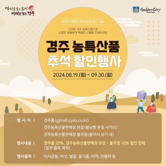 [뉴스서울] 경주시가 APEC 정상회의 유치를 기념하고 민족 고유의 명절을 맞아 농특산물 추석 특별할인 행사를 선보인다.