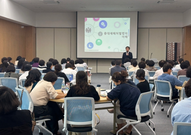 교육 주요내용은 ▲중대재해처벌법의 이해 ▲안전보건관리체계 구축▲위험성평가 절차 및 실시 등이며, 사회복지시설종사자 70여 명이 교육에 참여했다.