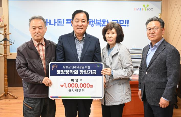 한편 이영수 씨는 지역 학생들이 올바르게 성장하여 평창군을 이끌어 나갈 수 있는 인재로 성장하길 바랬던 아버지의 뜻을 기리고 지역인재 양성에 동참하기 위해 평창장학회에 1백만원을 기탁했다.