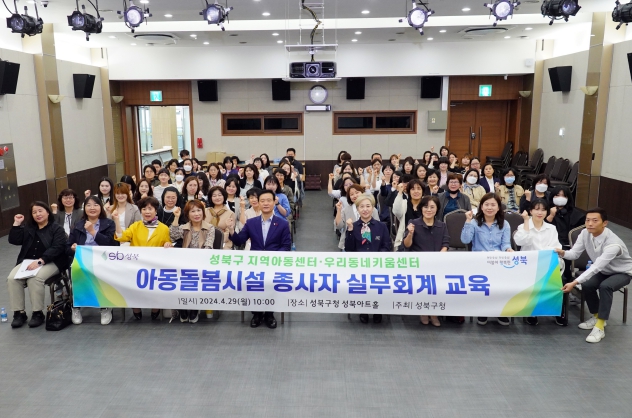 [뉴스서울] 서울 성북구가 아동 돌봄시설 종사자를 대상으로 회계 교육을 진행했다. 지난 29일 구청 아트홀에서 진행한 교육은 구 아동 돌봄시설의 회계분야 지도·점검을 담당하는 공인회계사가 직접 강의를 진행하고 관내 우리동네키움센터(12개소)와 지역아동센터(23개소) 종사자가 참여했다.
