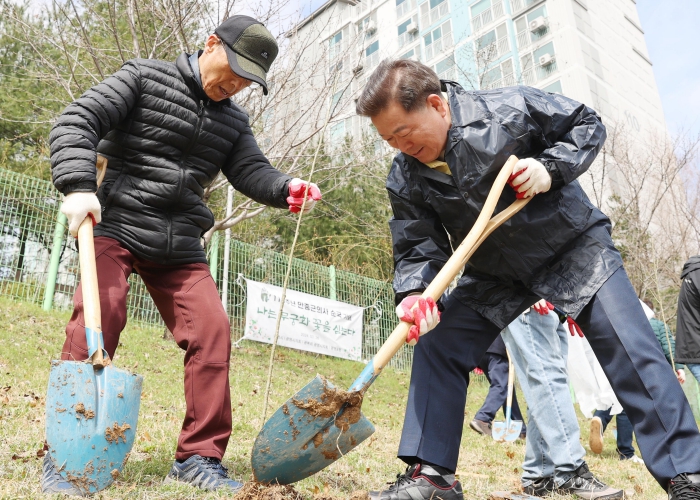 [뉴스서울] 광명시와 광복회 광명시지회는 지난 3월 26일과 28일 소하 유수지, 광명동굴 스카이뷰 앞에 무궁화나무 350그루를 심었다.