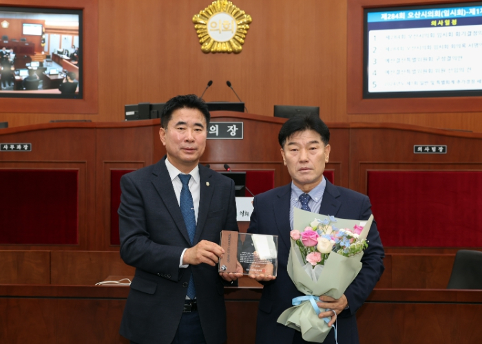 [뉴스서울] 오산시의회는 지난 22일 본회의장에서 제284회 오산시의회 임시회를 개최하고 조근호 오산시 지역자율방재단장을 명예의장으로 위촉했다고 밝혔다.
