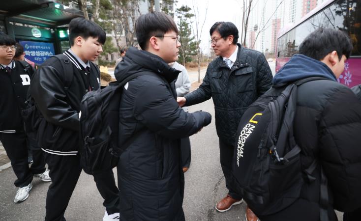 [뉴스서울] 도성훈 인천광역시교육감은 2025학년도 신학기 개학일인 3월 4일 오전, ‘학생성공버스’의 송도 탑승지와 영종 하차지를 방문하여 학생들의 등교를 격려했다.