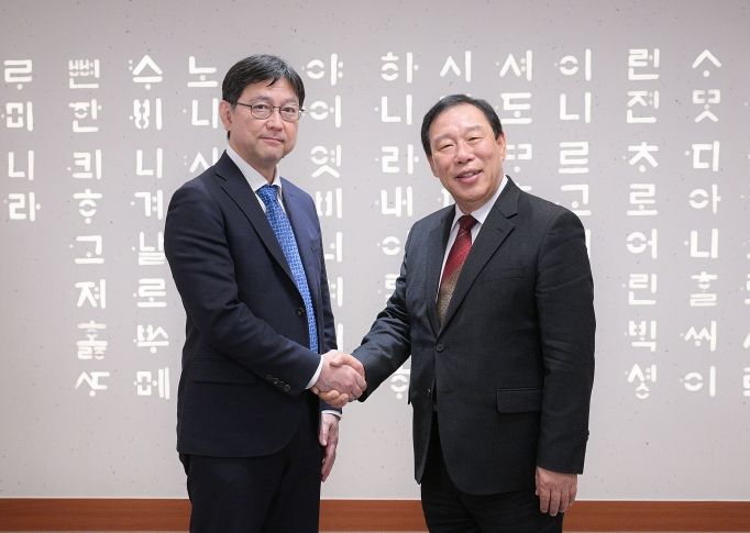 [뉴스서울] 최민호 세종시장이 20일 시청 세종실에서 마에카와 나오유키(前川直行) 일본무역진흥기구(JETRO) 서울사무소장을 만나 환담을 갖고 한일 기업활동 촉진 방안을 논의했다.