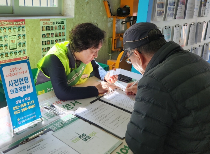 [뉴스서울] 울산 남구는 전문성과 생애경력을 갖춘 어르신이 직접 삶의 존엄한 마무리를 도와드리는 역할을 하는 사회서비스형 노인일자리인 ‘사전연명의료의향서 상담사 운영지원’ 사업을 효율적으로 추진하고 있다고 2일밝혔다.