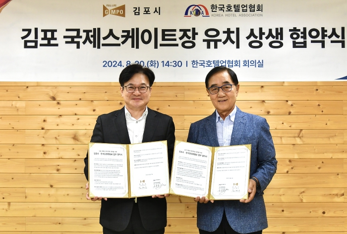 협약에는 김포시의 유치 공모 참여 및 활동에 대한 한국호텔업협회의 협력과 지지는 물론, 유치 이후 빙상 스포츠 육성을 위한 상호 자원 활용과 대회·행사 시 숙박시설 지원 및 마케팅 협력을 통한 상생 방안을 담았다.