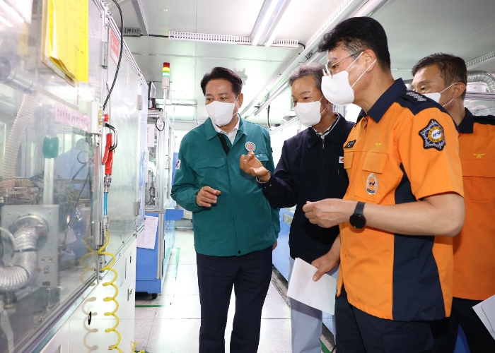 최대호 안양시장, 장재성 안양소방서장을 비롯한 관계 공무원, 업체 관계자 등은 27일 오후 3시경 만안구에 있는 한 리튬 이차전지 제조업체를 방문했다.