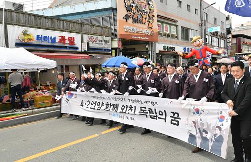[뉴스서울] 울주청년회의소가 2일 울주군 언양읍 행정복지센터에서 이순걸 울주군수, 김영철 군의장 및 군의원, 독립유공자 유족, 주민, 학생 등 500여명이 참여한 가운데 제105주년 기념 언양 4.2만세운동 재현행사를 개최했다.
