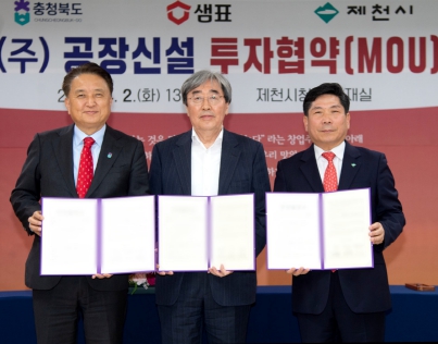 [뉴스서울] 제천시는 2일 제천시청에서 국가대표 식품기업인 샘표식품 주식회사와 제2산업단지 공장 신설 투자협약을 체결했다.