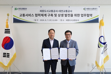 업무 협약식은 도순구 세종도시교통공사 사장과 연규양 대전교통공사 사장 및 두 기관 관계자들이 참석한 가운데 사업 소개, 협약서 서명, 교통사업현장 안내 순으로 진행됐다.