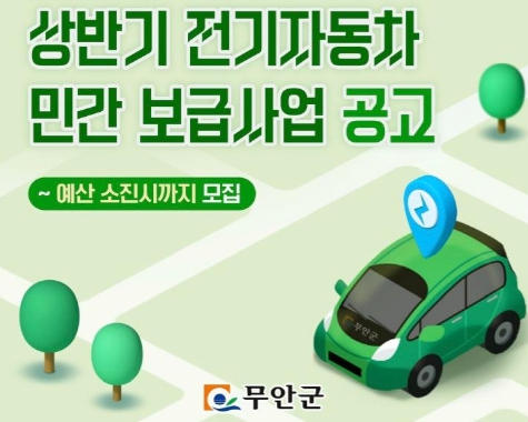 [뉴스서울] 무안군은 깨끗한 대기 환경 조성과 온실가스 배출량 감소 등 탄소중립 조기 실현을 위해 친환경 전기자동차 구매지원 사업을 지원하고 있다고 밝혔다.