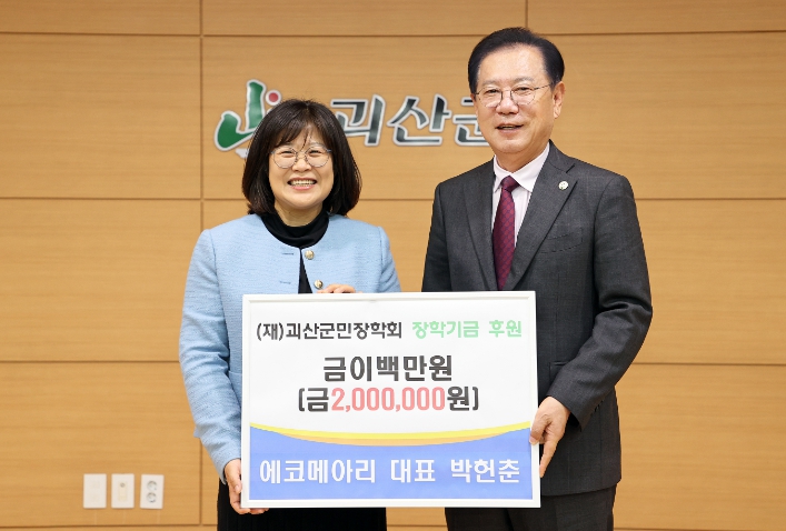 ▲ ㈜에코메아리, (재)괴산군민장학회에 장학기금 전달 |