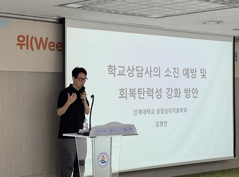 인제대학교 상담심리치료학과 김명찬 교사를 초청해 ‘학교 상담사의 소진 예방과 회복탄력성 강화 방안’을 주제로 강의를 진행했다.