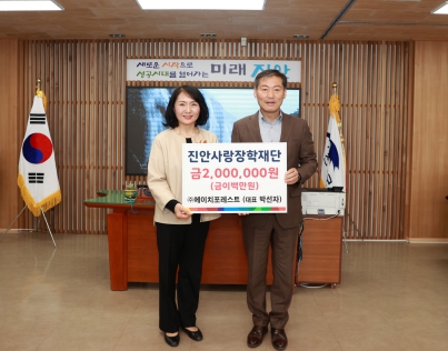 [뉴스서울] 농업회사법인 ㈜에이치포레스트가 2일 진안사랑장학재단에 장학금 2백만원을 기부했다.
