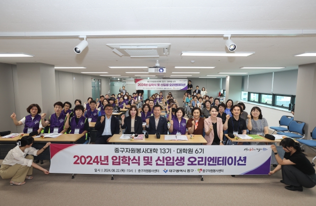 [뉴스서울] 대구 중구는 22일 중구자원봉사센터 대강당에서 대학 44명, 대학원 21명을 대상으로 ‘제13기 중구자원봉사대학 및 제6기 중구자원봉사대학원’ 입학식을 가졌다.