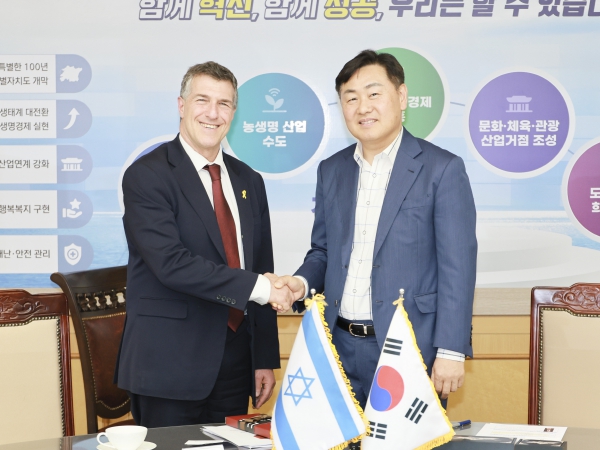 김 지사는 공식 면담에서 “이차전지산업을 비롯해 바이오 특화단지 유치를 통한 바이오산업 육성, 방위산업을 특화해 육성하려는 우리 전북과 이스라엘의 혁신역량이 협업할 수 있는 방안을 만들어가길 희망한다”며 “경제와 기술 등 다양한 분야의 실질적 교류가 이뤄질 수 있도록 대사님의 각별한 관심을 당부드린다”고 말했다.