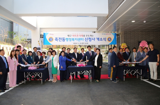 이태훈 달서구청장은 “죽전동 신청사 건립에 협조해 주시고, 공사기간 동안 불편을 참아주신 주민 여러분께 감사드린다”며, “신청사 개소를 통해 쾌적하고 효율적인 공간에서 주민들의 다양한 행정·복지수요에 대응하고, 동범서죽의 중심에 있는 죽전동에서 최선의 행정서비스를 제공하길 기대한다” 고 밝혔다.