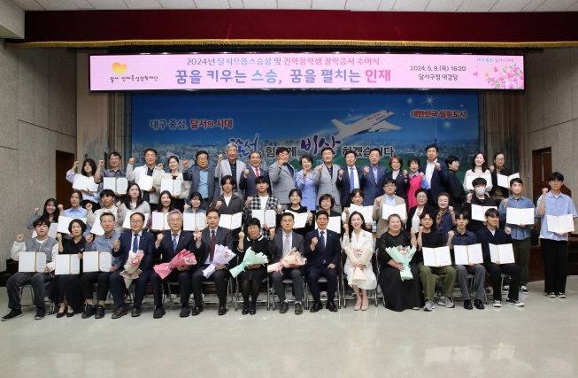[뉴스서울] 대구 달서구가 9일 구청 2층 대강당에서 초·중·고 우수교사 3명에게 달서으뜸스승상 시상과 2024년 대입에서 우수한 성적을 거둔 진학장학생 32명에게 장학금 전달식을 진행했다.