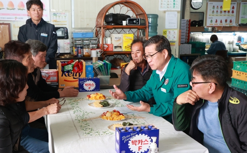 이어 진 군수는 지곡면 수출 딸기 공동선별 현장을 찾아 선별 및 검수 과정 등 운영 현황을 직접 관찰하고 현장에서 수출딸기 생산자와 선별장 운영 단체의 고충사항을 청취했다.