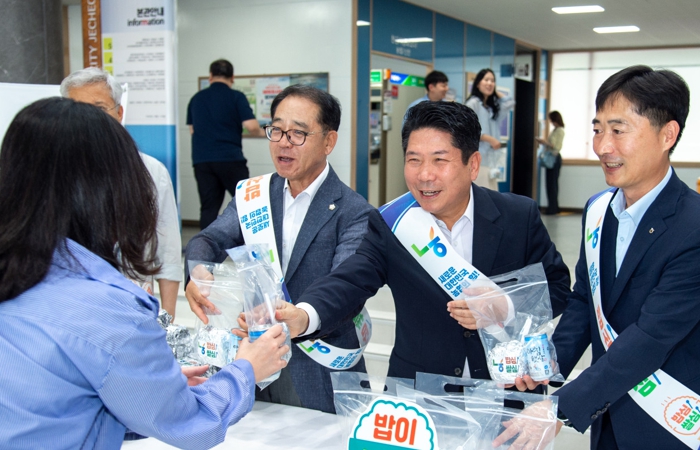 이날 김창규 제천시장은 지난 7월 31일 김영환 충북도지사를 시작으로 청주시, 충주시에 이은 도내 4번째 주자로, 뜻깊은 행사에 동참하며, 출근하는 직원들에게 쌀로 만든 밥버거와 쌀음료 300여 개를 직접 나눠주며 우리 쌀에 대한 적극적인 관심과 소비 촉진을 독려했다.