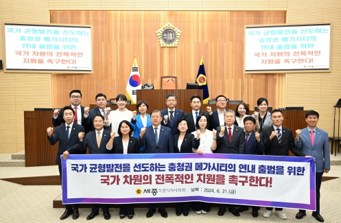 한편, 세종시의회는 ‘충청지방정부연합 출범 및 지원 촉구 결의안’을 대통령(비서실장)을 비롯해 국회의장, 더불어민주당 대표, 국민의힘 대표, 국무총리(국무조정실장), 기획재정부장관, 국회사무처장, 행정중심복합도시건설청장 등에 이송할 예정이다.