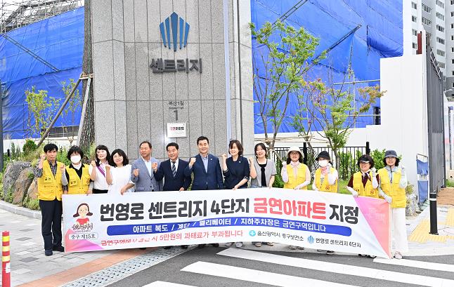 울산 중구보건소는 6월 20일 오후 4시 번영로센트리지 4단지 아파트(복산1길 1) 정문에서 금연아파트 현판식을 열었다.