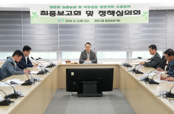 이날 최종보고회는 박상돈 천안시장 주재로 천안시 농업·농촌 및 식품산업 정책심의회 위원 및 농식품분야 관계 공무원 등 20여 명이 참석한 가운데 진행됐다.